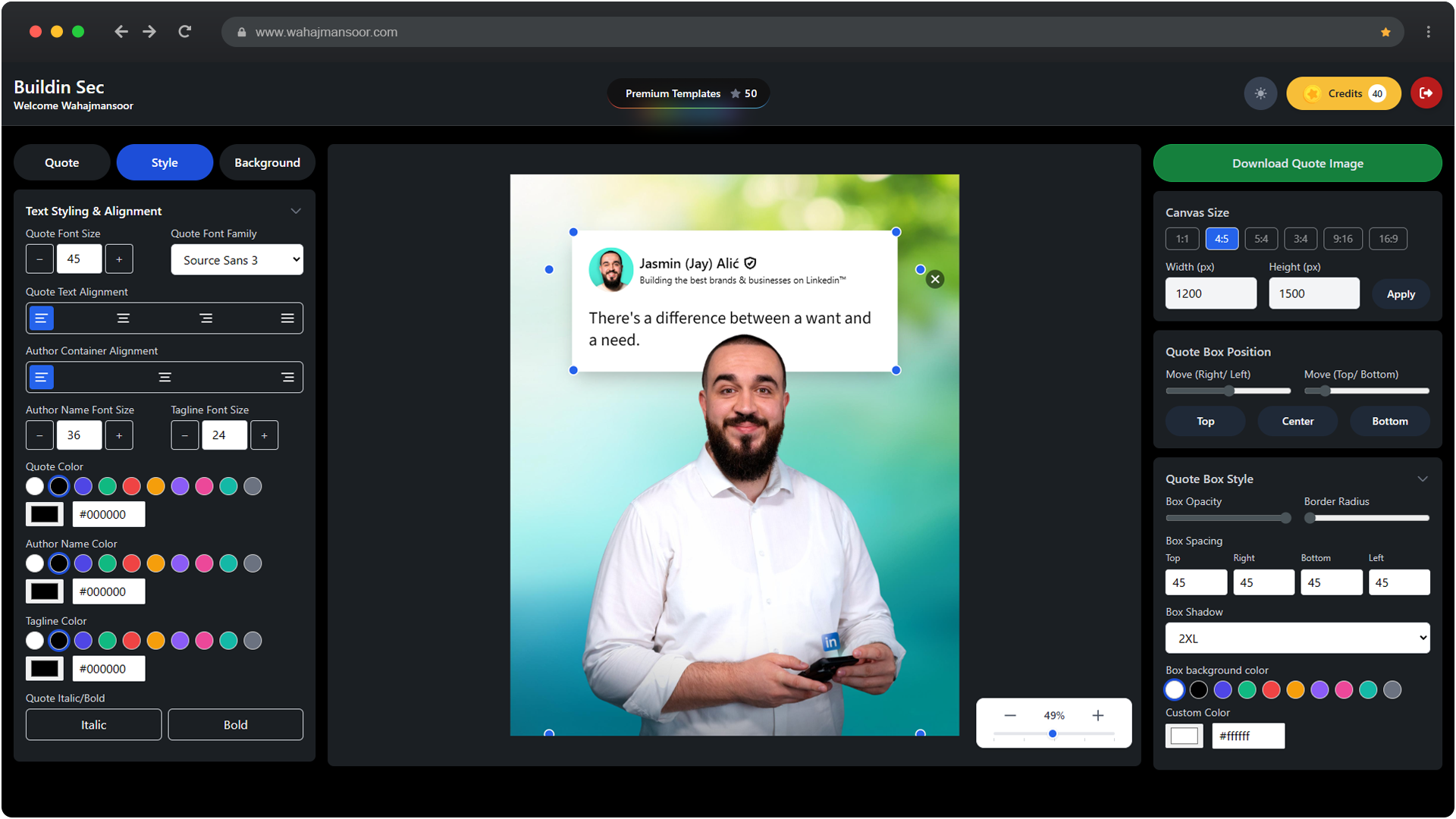 Jasmin Alić is known for powerful, eye-catching posts on LinkedIn. With our tool, you can create similar stunning designs in minutes no design skills needed.